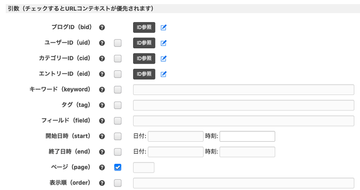 の3点が必要になります。「チェックするとURLコンテキストが優先されます」と書いてあるように、ここにチェックが入っているとモジュールはURLから表示内容を判断します。ページャーのリンクをクリックするとURLの末尾に page/2/ のような文字列が追加され、それがURLコンテキストとして機能してページに合った内容を表示することになります。